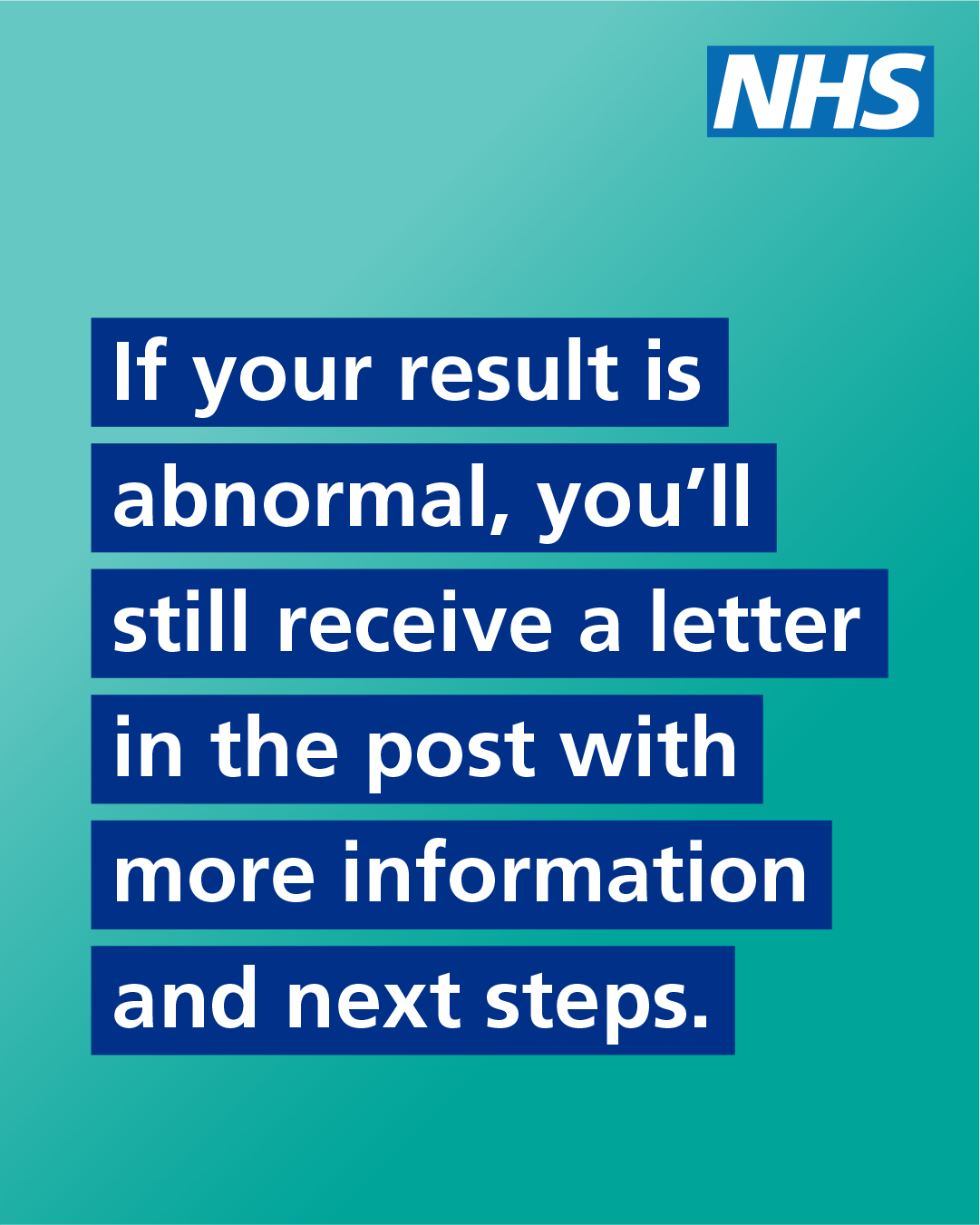 If your result is abnormal, you’ll still receive a letter in the post with more information and next steps